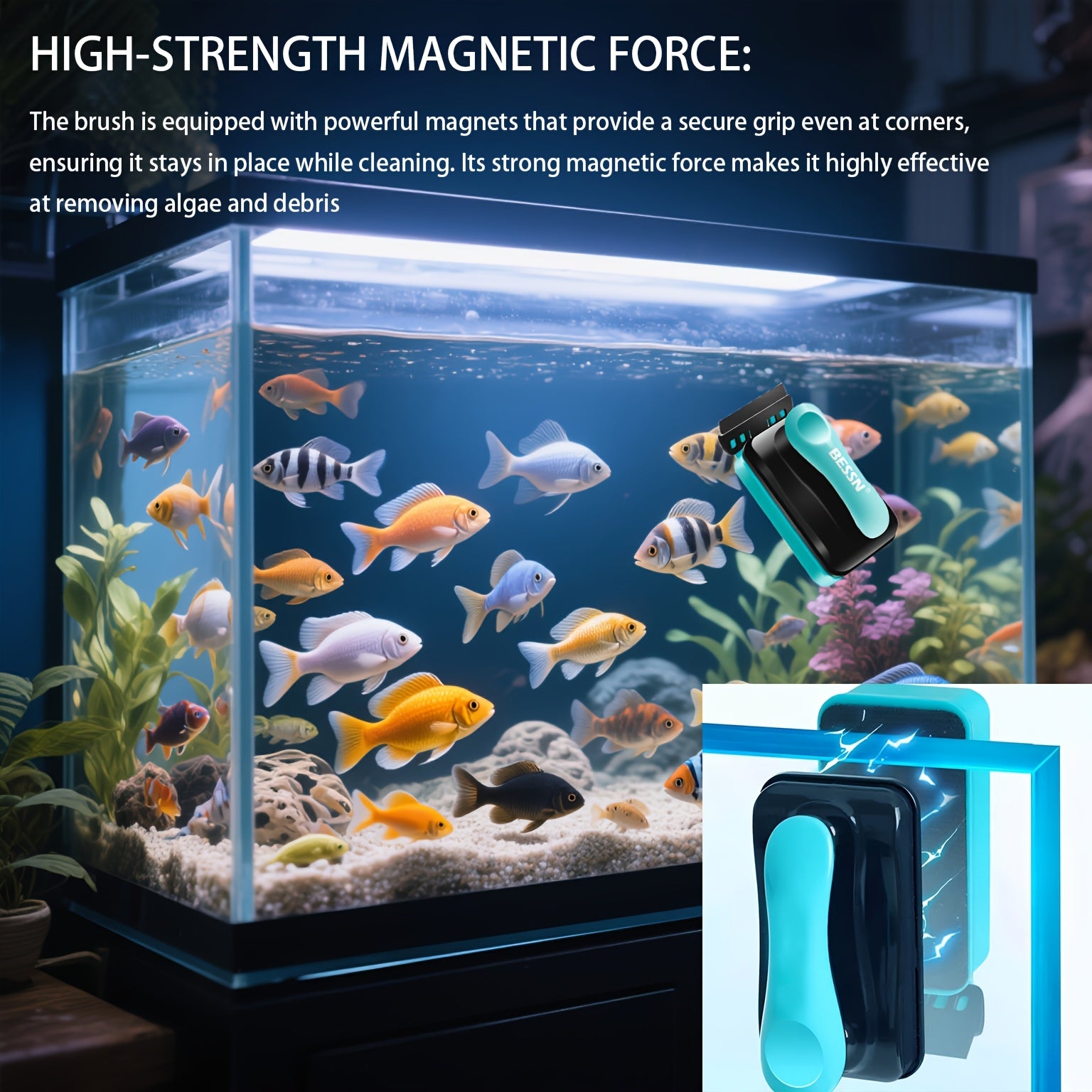 Imagine effortlessly gliding the brush across your tank and watching algae vanish in seconds — no wet hands, no mess. The ergonomic design and strong magnetic connection make cleaning faster, easier, and more enjoyable.